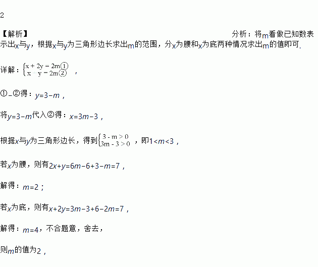 若二元一次方程组的解,的值恰好是一个等腰三角形两边的长, 且这个等腰三角形的周长为7,则的值为____________.