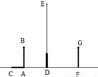 如图,在路灯下,小明的身高如图中线段AB所示,他在地面上的影子如图中线段AC所示,小亮的身高如图中线段FG所示,路灯灯泡在线段DE上.