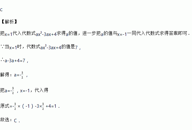 当x=1时,代数式ax3﹣3ax+4的值是7,则当x=﹣1时,这个代数式的值是( )