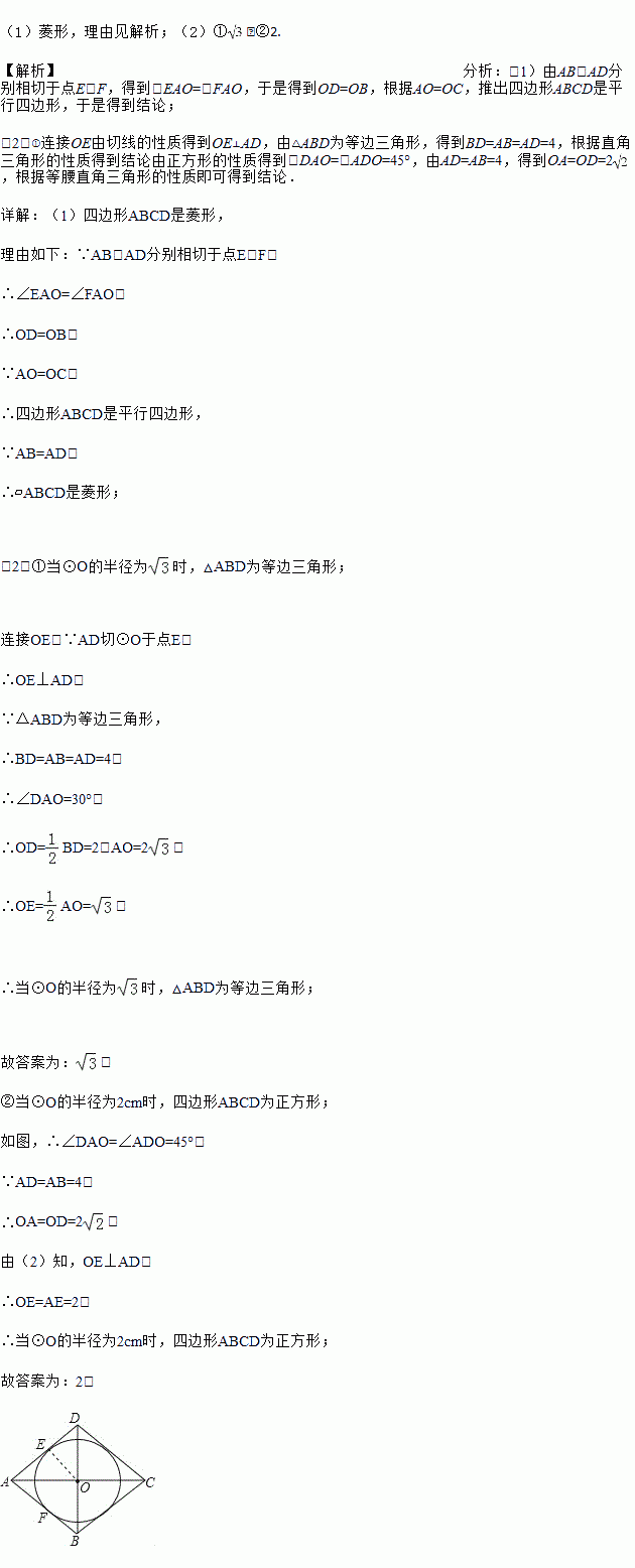 ②当⊙O的半径为 cm时,四边形ABCD为正方形.