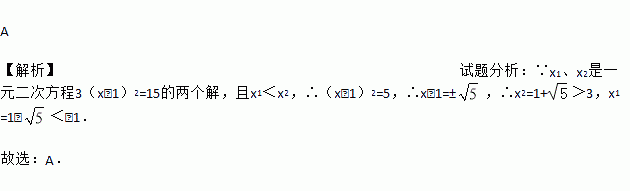 x1,x2是一元二次方程3(x-1)2=15的两个解,且x1<x2,下列说法正确的是( )