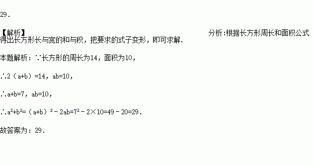 一个长方形的长、宽分别为a、b,周长为14,面积为10,求a2+b2