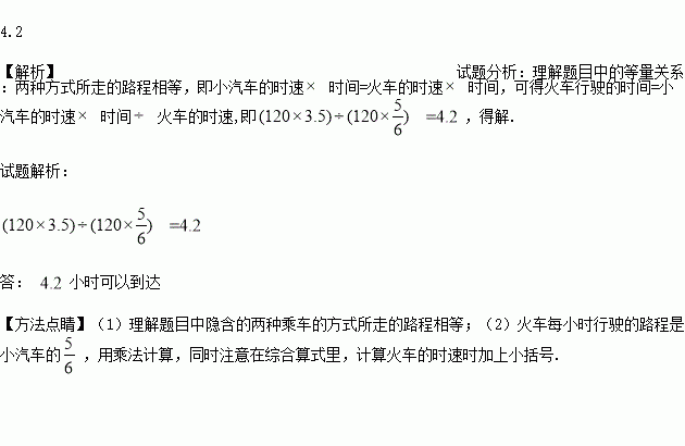车每小时行120千米需行3.5小时。如果改乘火车,每小时行驶的路程是小汽车的,多少小时可以到达?