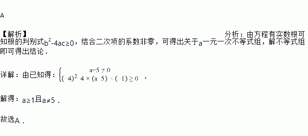 关于x的一元二次方程(a-5)x2-4x-1=0有实数根,则a满足( )