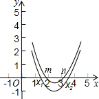 分析:因为x1和x2为方程的两根,所以满足方程(x-m)(x-n)=2,再由已知条件x1<x2、m<n结合图象,可得到x1,x2,m,n的大小关系.