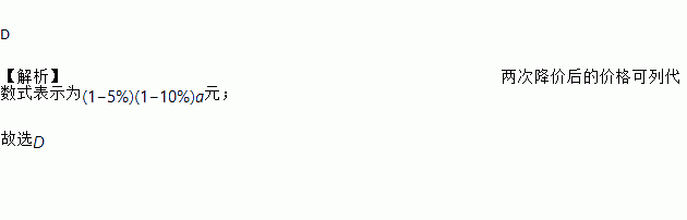 D 【解析】两次降价后的价格可列代数式表示为(1?5%)(1?10%)a元; 故选D比较