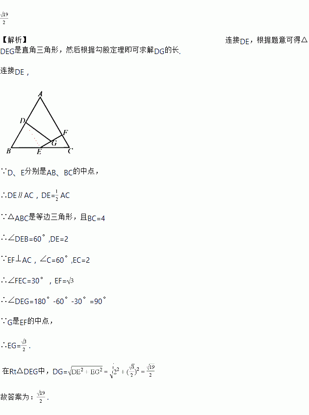 如图,在边长为4的等边中,,分别为,的中点,于点,为的中点,连接,则的长为__________.