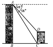 如图,甲、乙两座建筑物的水平距离为,从甲的顶部处测得乙的顶部处的俯角为,测得底部处的俯角为,求甲、乙建筑物的高度和(结果取整数).参考数据:,.