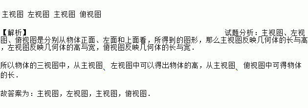物体的三视图中,从__________、__________中可以得出物体的高,从___________、____________中可得物体的长.