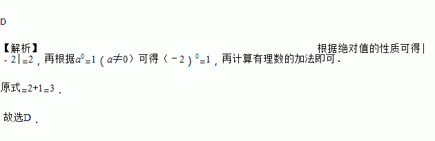 计算|-2|+(-2)0=( )