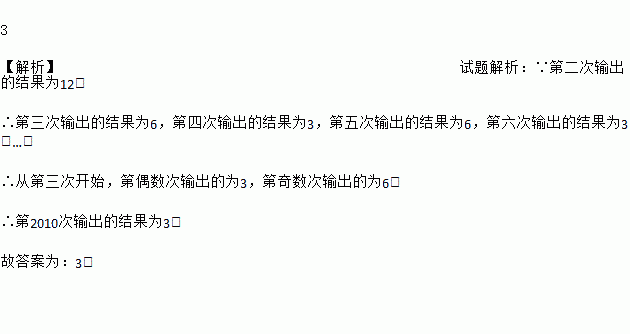 如图所示的运算程序中,若开始输入的x值为48,我们发现第一次输出的结果为24,第二次输出的结果为12,…,则第2010次输出的结果为_____.