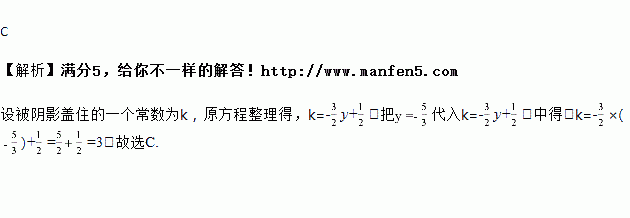 方程2y﹣=y﹣中被阴影盖住的是一个常数,此方程的解是y=﹣.这个常数应是( )