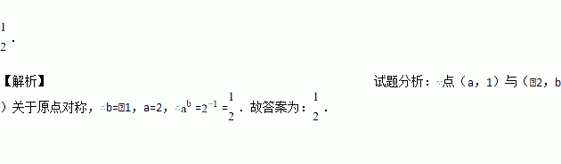 若点(,1)与(﹣2,b)关于原点对称,则=_______.