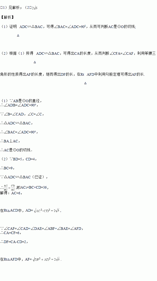 (2)若⊙O的半径为3,∠EAC=60°,求AD的长。