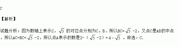 如图,数轴上表示2,的对应点分别为C,B,点C是AB的中点,则点A表示的数是( )