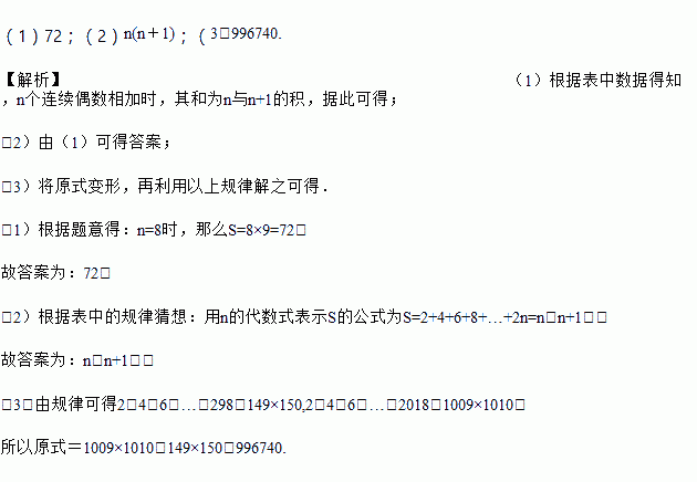 从2开始,连续的偶数相加,它们和的情况如下表:
