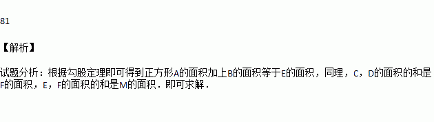 如图,所有的四边形都是正方形,所有的三角形都是直角三角形,其中最大的正方形的边长为9cm,则正方形A,B,C,D的面积之和为_________cm2.