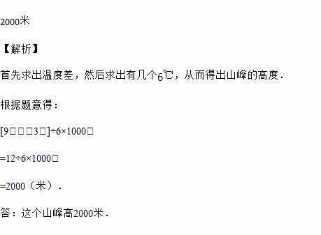小明和小亮利用温差来测量山峰的高度.小明在山脚测得的温度是9℃,小亮在山顶测得的温度是﹣3℃,已知该地区高度每升高1000米,气温就会下降6℃,求这个山峰的高度.