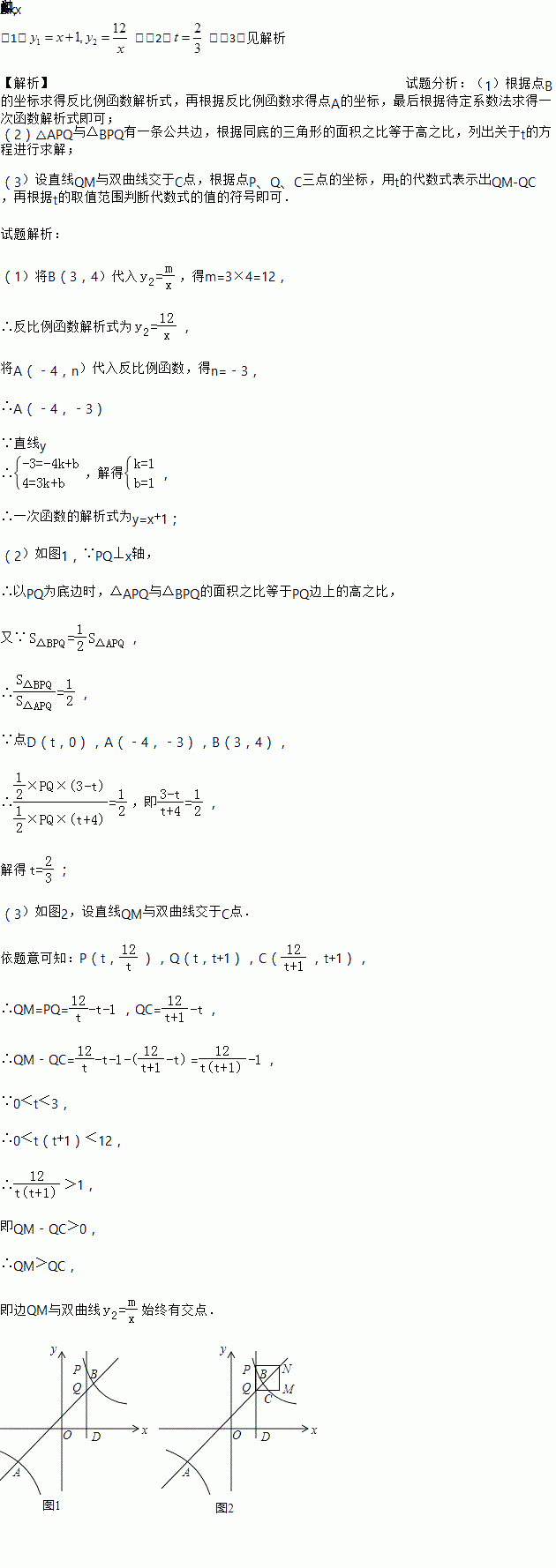 和直线y1=kx+b于P、Q两点