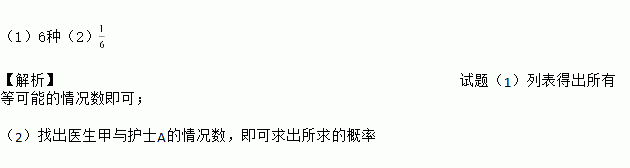 ⑴ 若随机选一位医生和一名护士,用树状图(或列表法)表示所有可能出现的结果;