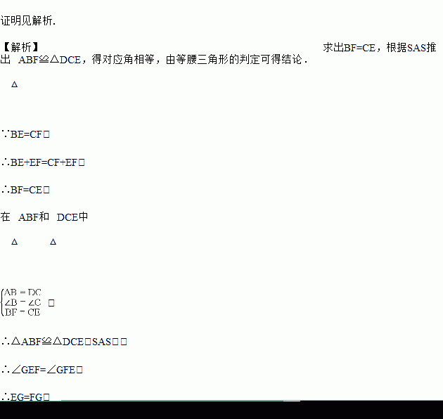 如图,点E、F在BC上,BE=CF,AB=DC,∠B=∠C,AF与DE交于点G,求证:GE=GF.