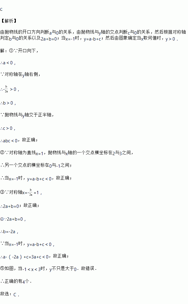 二次函数的图象的对称轴是直线,其图象的一部分如图所示则:①;②;③;④;⑤当时,.其中判断正确的有( )个.