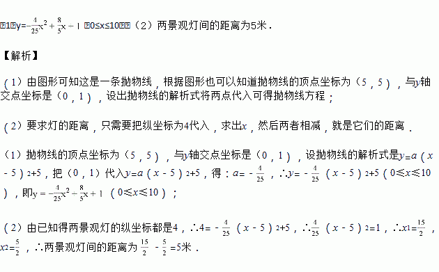 (2)求两盏景观灯之间的水平距离。