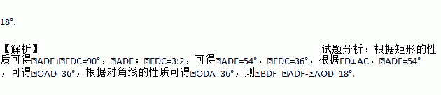 如图,在矩形ABCD中,对角线AC、BD相交于点O,若DFAC,ADF:FDC= 3:2,则BDF=_________.