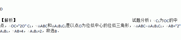 如图,△ABC和△A1B1C1是以点O为位似中心的位似三角形,若C1为OC的中点,AB=4,则A1B1的长为( )