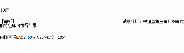 将一副常规的三角板按如图方式放置,则图中∠AOB的度数为______________.