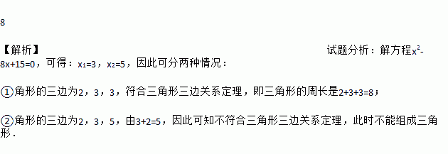 △ABC的两边长分别为2和3,第三边的长是方程x2﹣8x+15=0的根,则△ABC的周长是______.