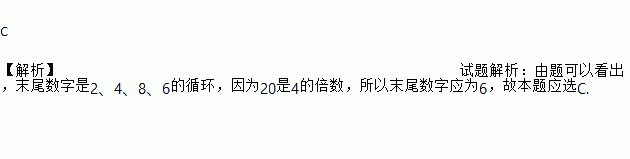 21=2,22=4,23=8,24=16,25=32,26=64,27=128,28=256,…根据上述算式中的规律,你认为220的末位数字是( )