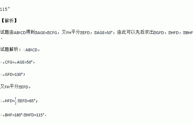 如图,已知AB∥CD,EF交AB于点E,交CD于点F,FG平分∠EFD,交AB于点G.若∠1=50°,求∠BGF的度数.