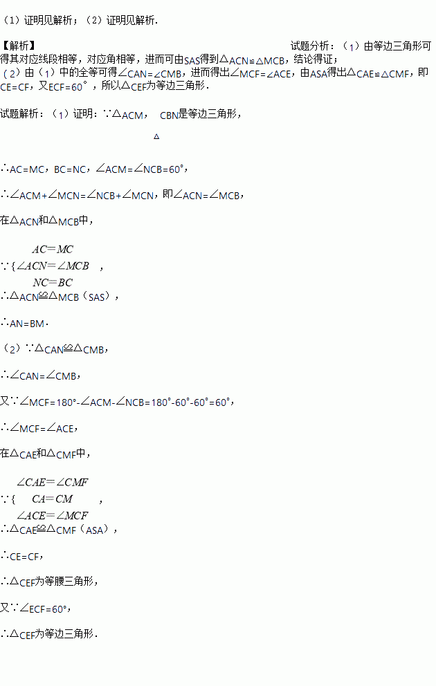 求证:(1)AN=BM.(2)△CEF是等边三角形