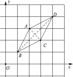 7.平行四边形ABCD中三个顶点的坐标为A(2,3)、B(1,1)、C(4,2),则D的坐标为(4,4),平行四边形ABCD的面积为4.分析 画出图形即可求出点D坐标,再证明四边形ABCD是菱形,求出对角线的长即可解决问题.