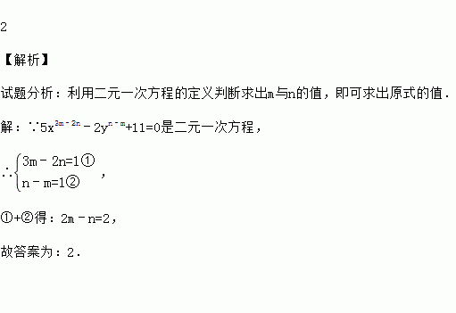 如果5x3m﹣2n﹣2yn﹣m+11=0是二元一次方程,则2m﹣n= .