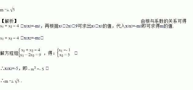 已知关于x的一元二次方程的两个实数根为x1、x2且x1+2x2=9,求m的值.