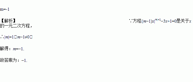 已知(m﹣1)x|m|+1﹣3x+1=0是关于x的一元二次方程,则m=_____.