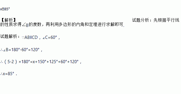 已知:如图,AB∥CD,求图形中的x的值.