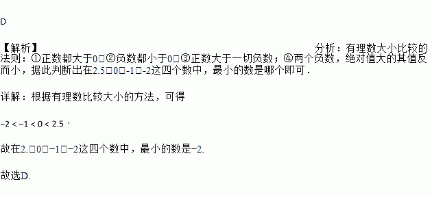 在2.5,-1,0,-2这四个数中,最小的数是( )