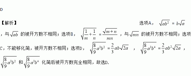 A. 被开方数相同的二次根式可以合并 B. 与可以合并