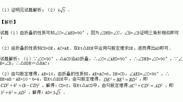 (2)已知AC=6,BC=8,求线段AD的长度.