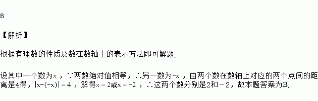 如果两个有理数的绝对值相等,且这两个数在数轴上对应的两点之间的距离为4,那么这两个数分别是( )