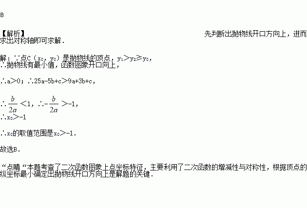已知两点均在抛物线上,点是该抛物线的顶点,若,则的取值范围是【 】