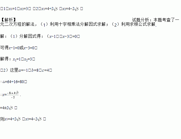 (1)x2﹣4x+3=0 (2)﹣x2+8x+4=0.