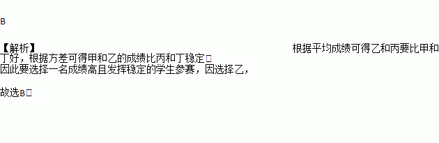我校准备在初二年级的四名同学中选拔一名参加我市“风采小主持人”大赛,选拔赛中每名学生的平均成绩及方差如表所示,若要选择一名成绩高且发挥稳定的学生参赛,则应选择的学生是( )