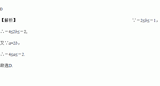 已知a=2b,若-2≤b≤-1,则a的取值范围是( )