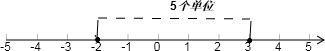 从图中不难看出,在数轴上A点表示3,B点表示-2,那么A、B两点之间的距离是5.