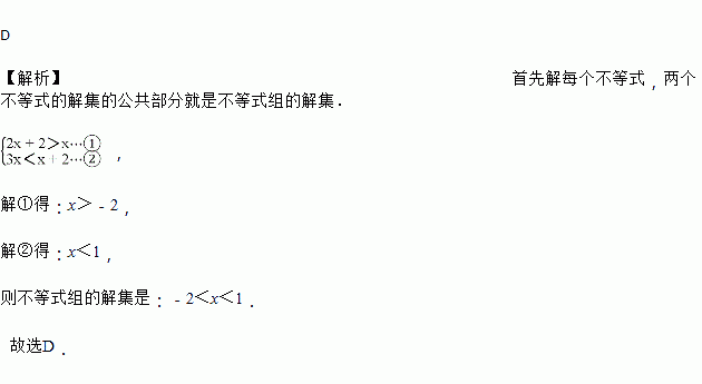 A. x>-2 B. x<1 C. -1<x<2 D. -2<x<1