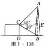 解:如图1—138所示,过C作CE⊥AB于E,则CE=BD=21米.在RtΔBCE中,因为tan∠BCE=